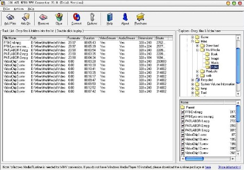 101 AVI MPEG WMV Converter is a simple program for conveting video files. It is used for bulk conversion between VCD, SVCD, DVD, AVI, XDIV, MPEG1, MPEG2, ASF and WMV formats. It supports various AVI video/audio codecs and WMV codecs such as DivX, Xvid and MPEG4. Ability to adjust video file parameters. The program is skinnable, providing up to 34 skins.