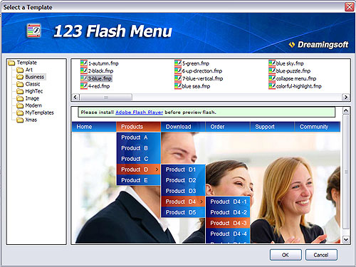 123 Flash Menu is very simple to use as you don't need any flash skills. Trial version contains about 20 designs, registered version contains 121 designs.