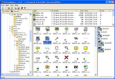 123IconHunter scans folders and drives on your computer and removes icons hidden in EXE, DLL, OCX, ICO and other types of files. It then saves them as icon files (.ICO) or bitmap files (.bmp).