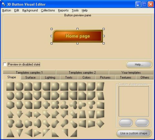 This tool allows you to create stunning 3D buttons without graphic skills. It offers a large variety of shapes and effects. You can assign text to buttons, to which you can also apply various effects, change its color and set an image as its background (again with effects). Anti-aliasing is applied to the text and the button borders. Created buttons can be saved as BMP, PNG, GIF and JPEG.