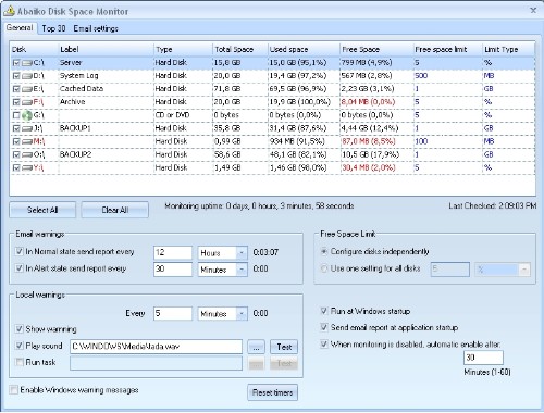 Abaiko Disk Space Monitor is a tool for monitoring free disk space on your computer. The special feature of this program is that the user can specify exactly which disk to monitor. The results about free space will be displayed on the screen.