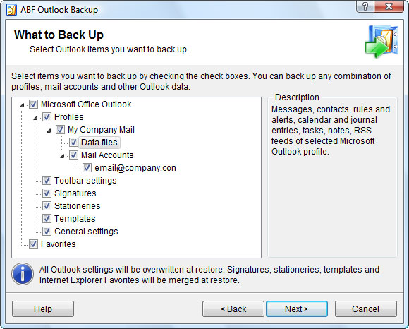 This program allows you to backup and restore your messages, contacts, settings, accounts, message rules, junk mail list, signatures, favorite websites, etc. Using the program, you can backup your data on one computer and restore it on another, such as a laptop. The program offers an easy user interface, which will be appreciated especially by beginners.
