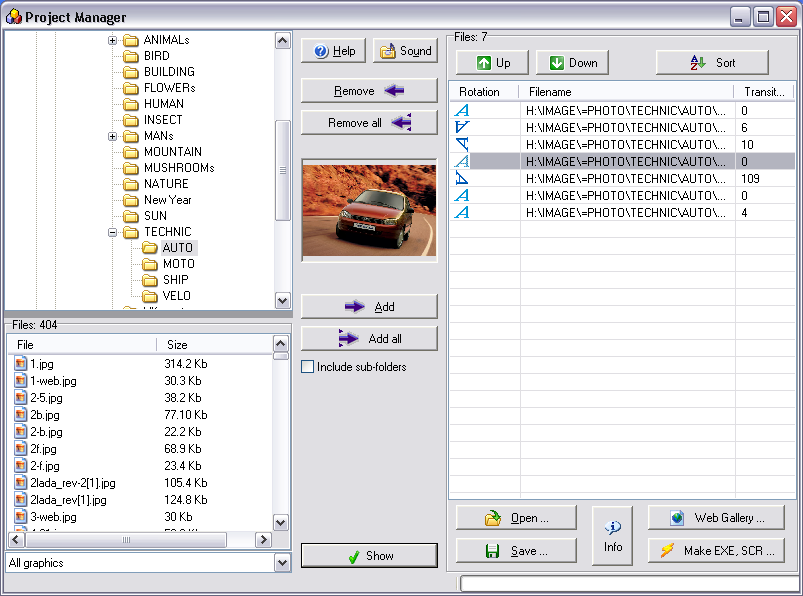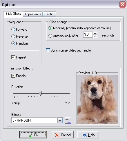 Able Photo Slide Show is an application for displaying all digital photos and graphic files in a slide show format, using many transition effects. Able Photo Slide Show displays your graphic files smoothly without having to open each one.