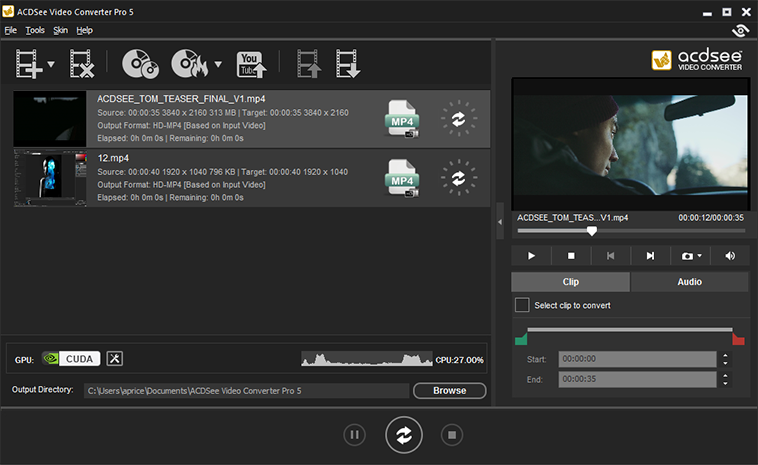 ACDSee Video Converter Pro easily converts video files between the most popular multimedia formats at high speed and quality, enables sharing on YouTube and Facebook, extracts audio, and can rip and burn DVDs.
