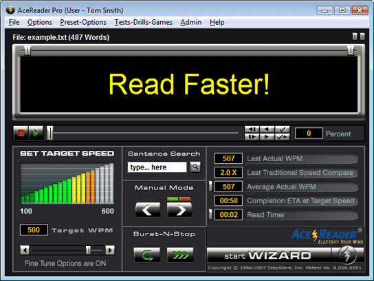 Some of us have reading problems (stuttering, dyslexia issues, etc.), which is why we have this program for you. It first detects your temporary reading speed and then helps you increase it with some exercises. It also increases the reading fixation zone of your eyes and helps you change it faster. The results can be displayed in a graph. Feel free to try this educational program! You must have but a sound card, a microphone and a good knowledge of English.
