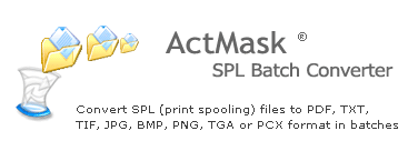 ActMask SPL Batch Converter allows you to view .SPL files (Print Spooling File) and convert them to PDF, TXT, JPG, GIF, TIFF, BMP, PNG, TGA or PCX formats. It supports batch conversion of these files.
