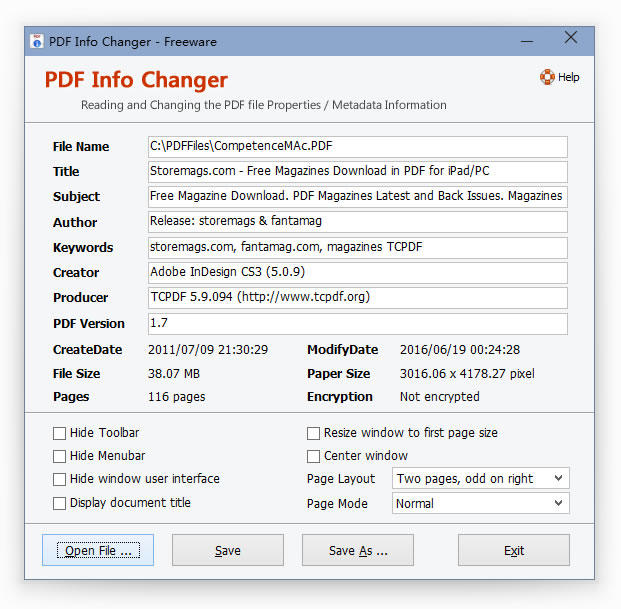 Adept PDF Info Changer is a free tool for reading and changing information about PDF file properties. It can also handle modification of attributes and metadata, whether it is the file name, title, keywords, PDF version, or even the subject.