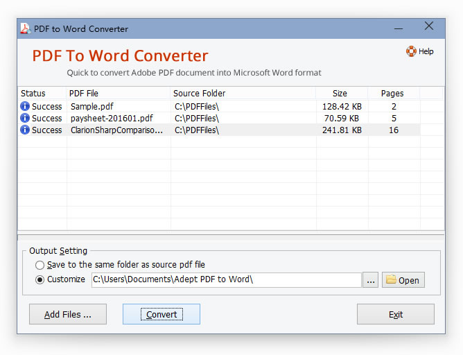 Adept PDF to Word Converter is a software that exports text, images and other content from any PDF document to an MS Word document so you can edit and reuse PDF content. Adept PDF to Word Converter preserves the original PDF text, layout and bitmap images in the generated document. Adept PDF to Word Converter software is a standalone program and does not require Microsoft Word, Adobe Acrobat, or even Acrobat Reader.