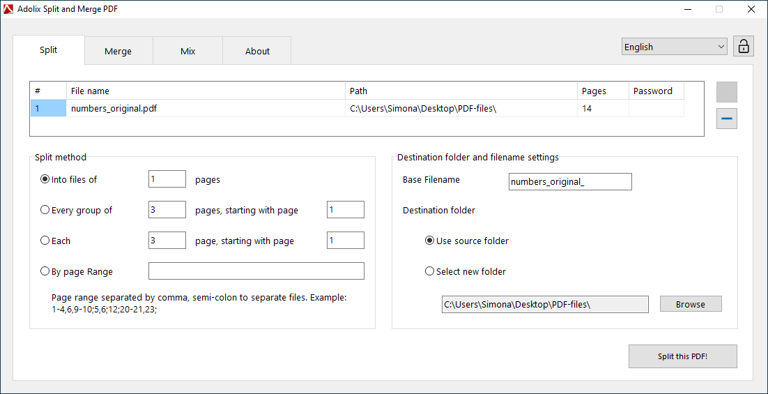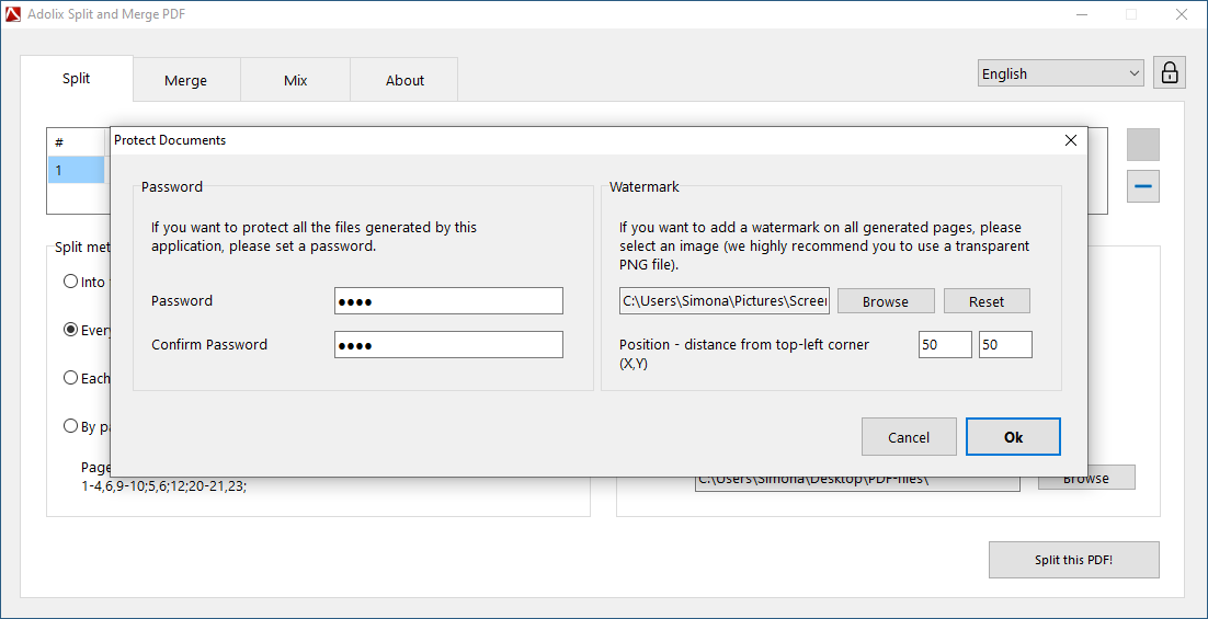 Adolix Split and Merge PDF is a free Windows application that helps you edit PDF files. You can split PDF documents into multiple files using a customized template, or you can merge PDF files into a single document. All generated PDF files can be protected with a password or watermark.