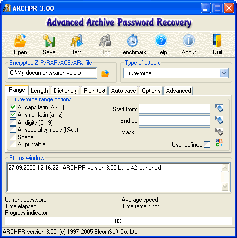 Advanced Archive Password Recovery recovers protective passwords or unlocks encrypted ZIP and RAR archives created with all versions of popular archivers.