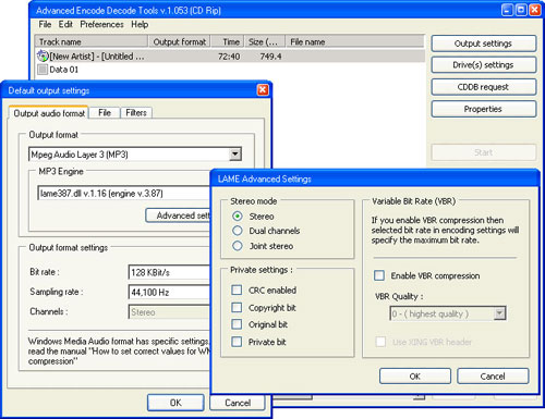 Advanced Encode Decode Tools uses a Hi-Fi audio compression algorithm and a unique AC3 decoder. It seamlessly performs coverting between WMA, Mpeg Audio Layer 3, Ogg Vorbis and WAV PCM formats, and supports ID3 tags. It also decodes from AC3 format to WMA, Mpeg Audio Layer 3, Ogg Vorbis and WAV PCM. Convenient multilingual interface allows single or multi-mode conversion (batch processing) and ripping of Audio CDs using FreeDB support.