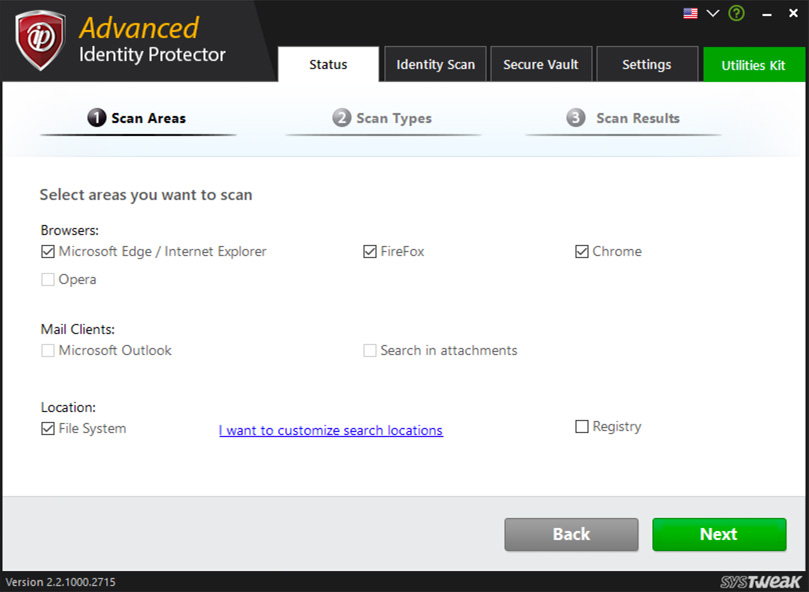 Using Advanced Identity Protector is very simple. Once this identity protection software is installed, run and click the Start Scan Now button to identify "hidden privacy" that reveals identity clues. These traces contain sensitive information such as email addresses, login IDs, passwords, credit card numbers, contact information and social security number, etc. Once Advanced Identity Protector detects these traces, you can either remove them or store them in the built-in secure vault.