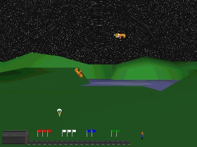 Each player controls one aircraft. The player's task is to shoot down the opponent's plane with a missile and then, if necessary, to hit the opponent ejected from the plane with a bomb. The game is very playable even on inferior computers. (Also tested on an 80486 processor at 100 MHz.)