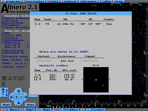 Planetarium containing: stars up to 12 mag, planet positions, 950 planets, deep-sky objects, binaries and variable stars.
