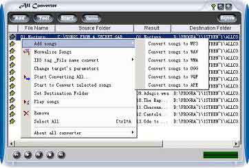 All Converter is a handy tool for converting interesting MP3, WAV, OGG, VQF and WMA formats. It includes volume normalization, supports ID3 tags version 1 and version 2. The operation is intuitive and simple, and the program can shut down the computer when the conversion is finished. It also allows bulk batch file processing and ID3 tag editing.