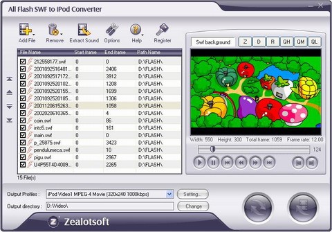All Flash Swf to iPod Converter is a powerful tool to convert flash swf files to iPod player. This program allows you to quickly export movies in very good quality. You can then conveniently play your favorite flash videos on your iPod.