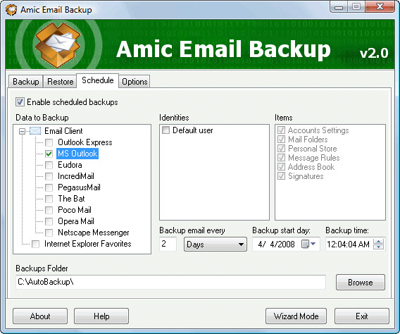 Amic Email Backup is a software that helps you backup your emails from mail clients. It backs up all your emails, including attachments, headers and other information. Backups are stored in a secure and easily accessible format.