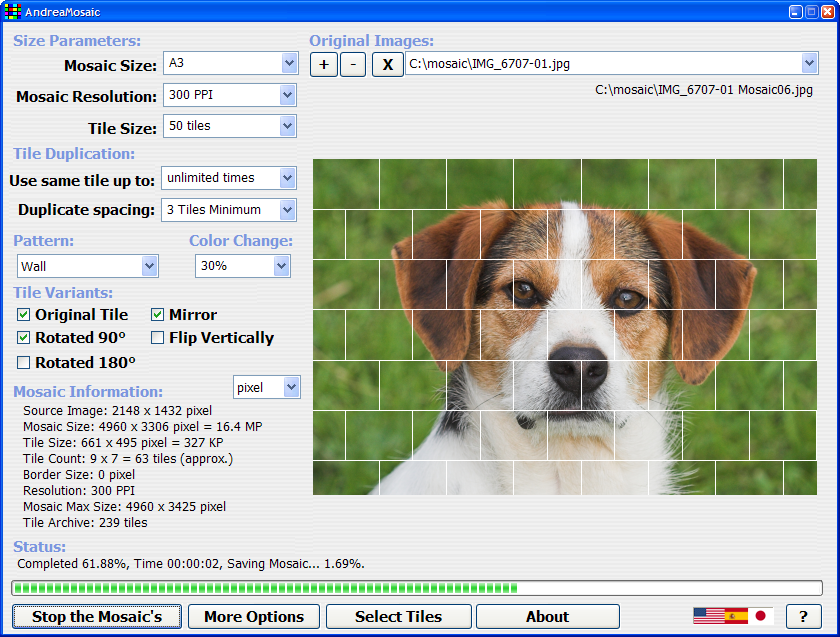AndreaMosaic is a tool for creating mosaics from your digital photos and images. A photo mosaic is an image composed of small snapshots of photos. The program offers a number of parameters for setting, editing an already created collection and much more. It is freeware.