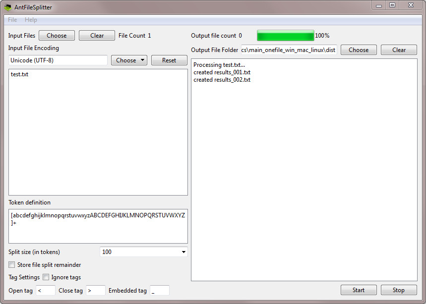 AntFileSplitter is a tool that allows you to split a large text file into smaller parts. Files can be split into a certain size or into a certain number of tokens. AntFileSplitter is a useful tool for sharing large text files or for editing them more easily.