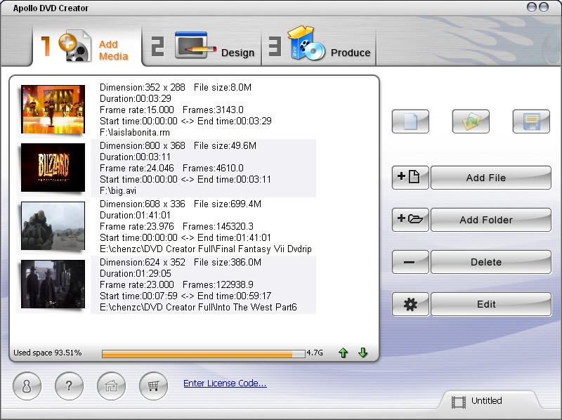 Apollo DVD Creator is used to create DVDs by converting almost any video file and burning it directly to a DVD disc, without the need to save it to a hard drive first. It includes a gallery of templates for creating menus or offers the possibility of creating your own templates.