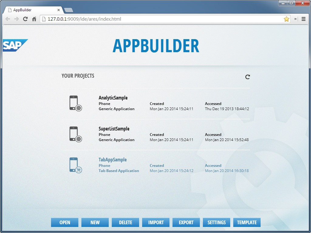 Using App Builder you can create HTML5 applications without programming knowledge. You can design and prepare the behavior of your apps in a visual way. App Builder allows you to create HTML5 apps for everyone! The program has several panels for selecting tools, actions, objects, views, etc.