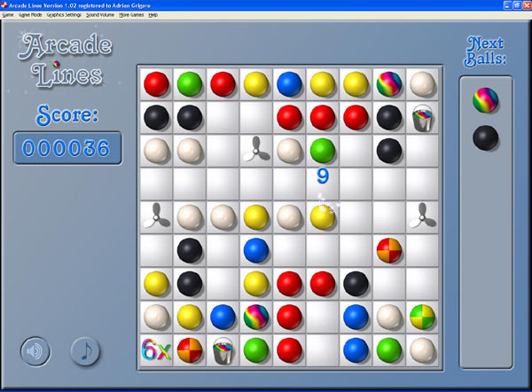 Arcade Lines is a nicely crafted arcade game. The player is tasked with placing five identically coloured balls in a row by moving them around the board. Once this is done, the row of identically colored marbles disappears. Each turn, several new ones appear. All attributes can be set according to your own needs, so you can change: