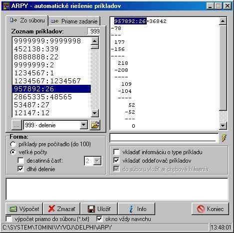 The ARPY program is a program that is used to calculate examples - displaying not only the result, but also the entire solution procedure.