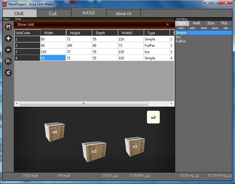 Arya Unit Maker is a tool that is used to calculate the raw material that is needed to produce different pieces of furniture. Included are tools for optimizing a cutting plan, before one is created it can be viewed in a visual presentation.
