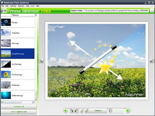 Ashampoo Photo Optimizer FREE helps you optimize and edit all your digital photos from one folder, with just a click of the mouse. The photos are processed at once.