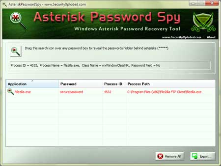 Asterisk Password Spy is a free tool to instantly reveal hidden passwords behind the asterisks (*****). The user-friendly interface helps you easily find passwords from any application.