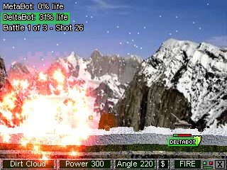Atomic Cannon is a fun game of tanks. It can be played alone against the computer or among 16 players in multiplayer. The goal is to destroy your opponents with a choice of up to 50 different weapons including the atomic bomb. The game offers 25 backgrounds, you also have to adapt to the current weather (rain, storm, snowfall).