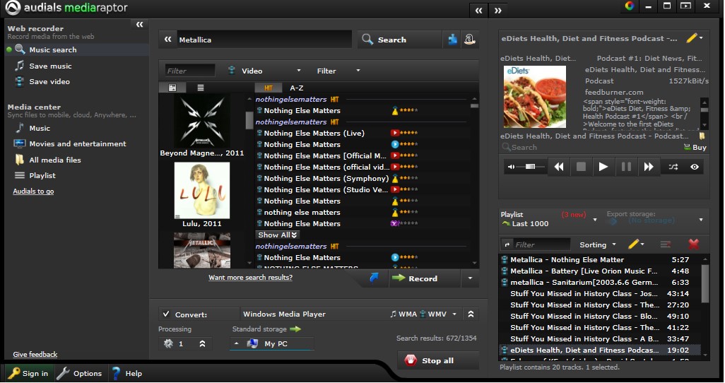 Audials Mediaraptor will offer you a very wide range of recording and copying music from subscription web services. The Screen Recording feature doesn't stop at HD video either. Grabbing the video being played has simply never been so easy and simple.
