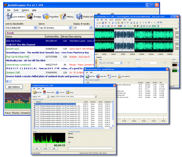 With AudioStreamer you can receive and record thousands of radio stations available on the Internet.
