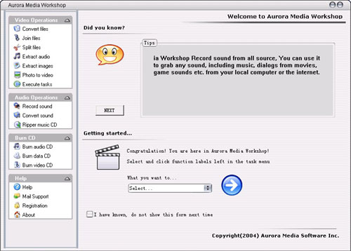 Aurora Media Workshop is an all-in-one utility for working with video, music and CD/DVD.