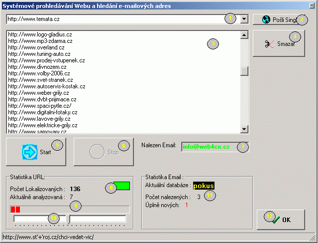The application uses the classic full-text search, which is commonly used on e.g. geogle or list. The interaction characters are "*@*.cz,.sk" and naturally a keyword to specify the search field. The searched email addresses can be right-clicked to open them in a classic search engine and check the validity of the company's association to the search topic. The scanned data can be conveniently saved under a group name and reused later. They can be edited, added and removed. You can create specific groups of end correspondents.