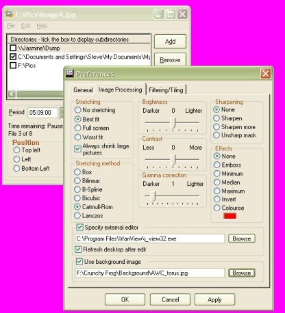 The Automatic Wallpaper Changer app was designed to display images as wallpapers on your desktop. Simply select one or more folders containing images and the program will create a list of images to display randomly.