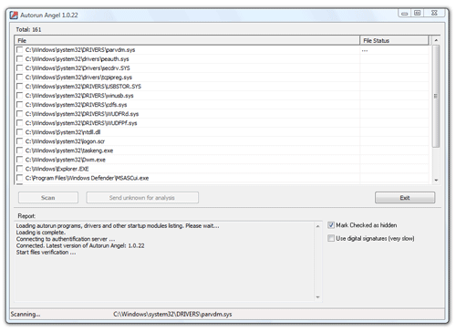 Autorun Angel helps protect your computer not only from spyware that collects personal information about computer users without their informed consent, but also from other malicious viruses. The program identifies hidden viruses through NictaTech's Anti-Virus Cloud Engine. It provides information about found items, file location, status and source. If any of the suspicious files are not detected, it can be sent for deeper analysis.