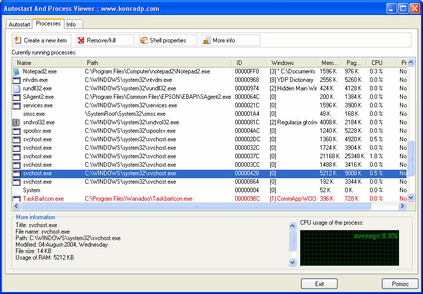 Autostart And Process Viewer manages startup programs and processes. The program will also help to remove unnecessary programs that run for system startup and alert you to new autostart programs.