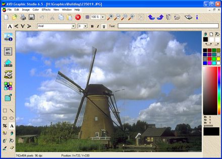 This program is a graphics, animation and video editor. You can edit, view or print images with it, even with various effects. AVD Graphic Studio supports TWAIN scanners, so you can also use it to work with scanned images.