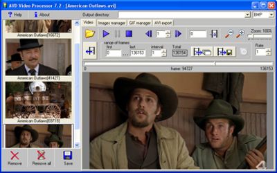 The application can export AVI files and create animated GIF files, or you can split a video into individual images. To create animated GIF files, the program offers a choice of different frame rates and image sizes. For creating individual images, you can set the frame range and color depth. Another feature is an effect that blurs moving objects, etc.