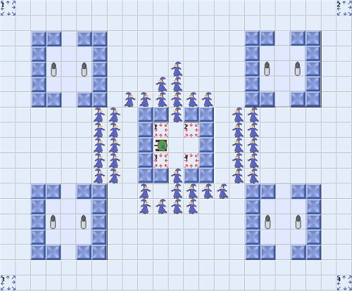 On the playing field are placed enemy pieces (Balabák). The behaviour of Balabak is simple, he advances directly to your piece. Your task is to kill all Balabaks by setting mines or shooting.