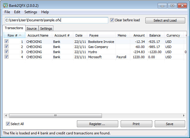 The Bank2QIF application enables the conversion of bank, investment and credit card activity files. It converts OFX, QFX, OFC, QBO, ASO, FKI, QBX files to QIF format.