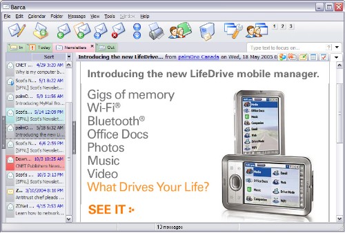 Barca is a handy email client that also includes a clear calendar and an address book organizer. The program allows for easy mail management (via POP3, APOD, IMAP and SMTP) along with contact logging and a recorder for writing down important notes.