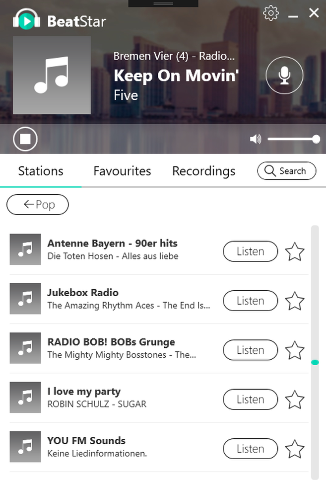 BeatStar is a simple, unpretentious internet radio player. Stations are divided by music genre. They can be saved to favorites for better access. Of course, the player includes controls for volume control and a text search box.
