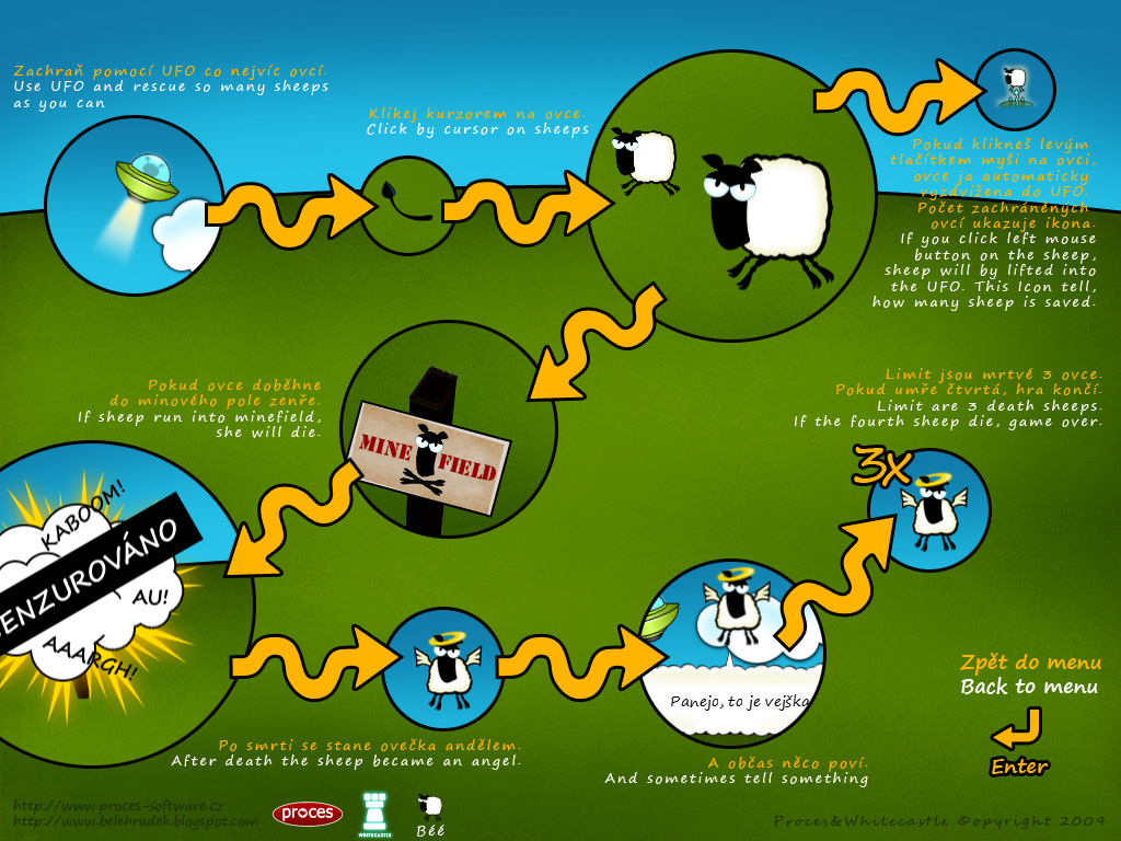 You take on the role of the alien Mufik, who is given a task worthy of a space saviour. On a tucked-away planet in a backwater solar system, a terrifying sheepcide (sort of like genocide, but in a sheepy way) threatens.