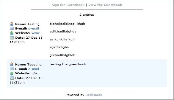 BellaBook Guestbook is a small, simple PHP guestbook script. It works to use "flat files" - meaning there is no need to manipulate a complex MySQL database.