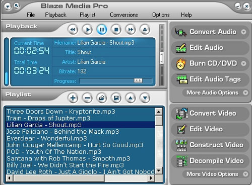 You can convert between CD, WAV, MP3, WMA, OGG, MPEG, AVI, TIFF and FLIC formats. In addition, it can convert between WAV codecs.
