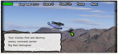 Fly your helicopter over the rocky mountains and shoot down other planes! Avoid enemy missiles! The game has 3 levels of difficulty. At the end of the game you will find out the exact number of successful hits.