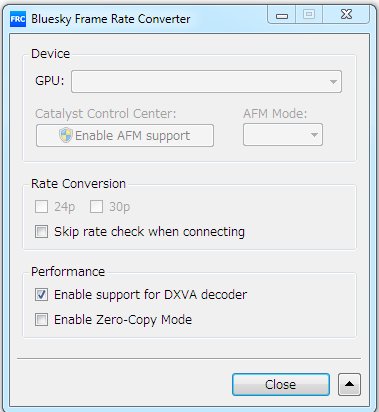 Bluesky Frame Rate Converter is a DirectShow filter. With it, you can convert the video frame rate by using the GPU, performing frame interpolation. It is compatible with AMD Fluid Motion Video and supports several models - Radeon R9/R7 Series, Radeon HD 7000 Series, and Kaveri or newer APUs.It offers support for Intel Haswell and newer iGPUs, but only under Windows 7. The filter is capable of converting 24p to 60p or 30p to 60p by frame interpolation.