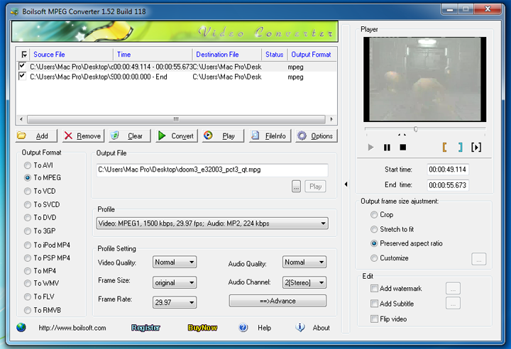 Boilsoft MPEG Converter is a converter that allows you to easily convert MPEG to AVI, FLV, MPEG, MP4, WMV, 3GP, RM, RMVB, to VCD/SVCD/DVD etc.